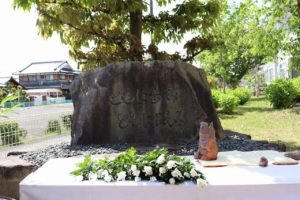 今回、病棟内のコロナ感染は収束しましたが、引き続き感染防止のため、花ノ木屋外の玄関東側にある慰霊碑前で、4家族のご遺族の皆様にもご参列いただき、法人並びにセンター幹部職員のみで執り行い、故人に対する追悼の意をささげると共に、コロナ終息と、皆様のご健康をご祈念いたしました。