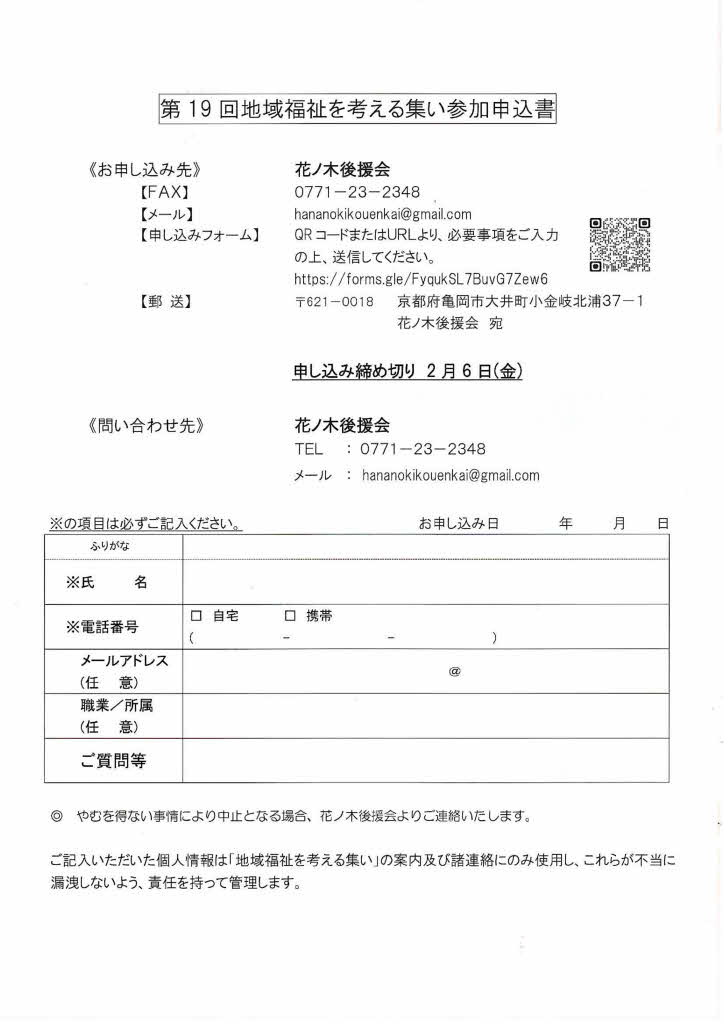 詳細はこちら(チラシ)を、お申し込みはこちら(申込書)または右のQRコードをご覧ください