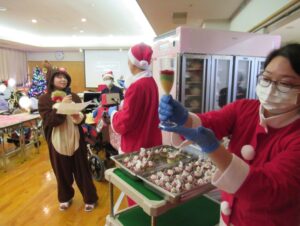 クリスマス気分を利用者さんに味わってもらおうと職員が変装したり、