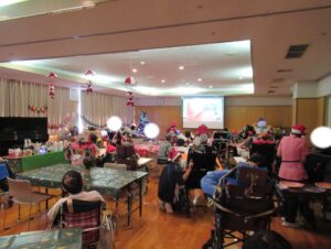 午後は演奏会♪ 入所者さんとご家族の方々、職員でクリスマスのひとときを堪能しました。